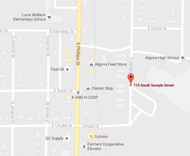 715 S. Sample Street- Algona, Iowa, 50511 Click here or on the map for directions (Google Maps)